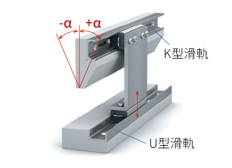 使用固定式滑軌和補償式滑軌 ( T+U系統) 的組合,可以解決兩支平行滑軌對準的獨特問題。透過使用 T+U系統, T型滑軌提供導向的作用, U型滑軌提供輔助支撐的作用,可分擔徑向力和 Mz 力矩。